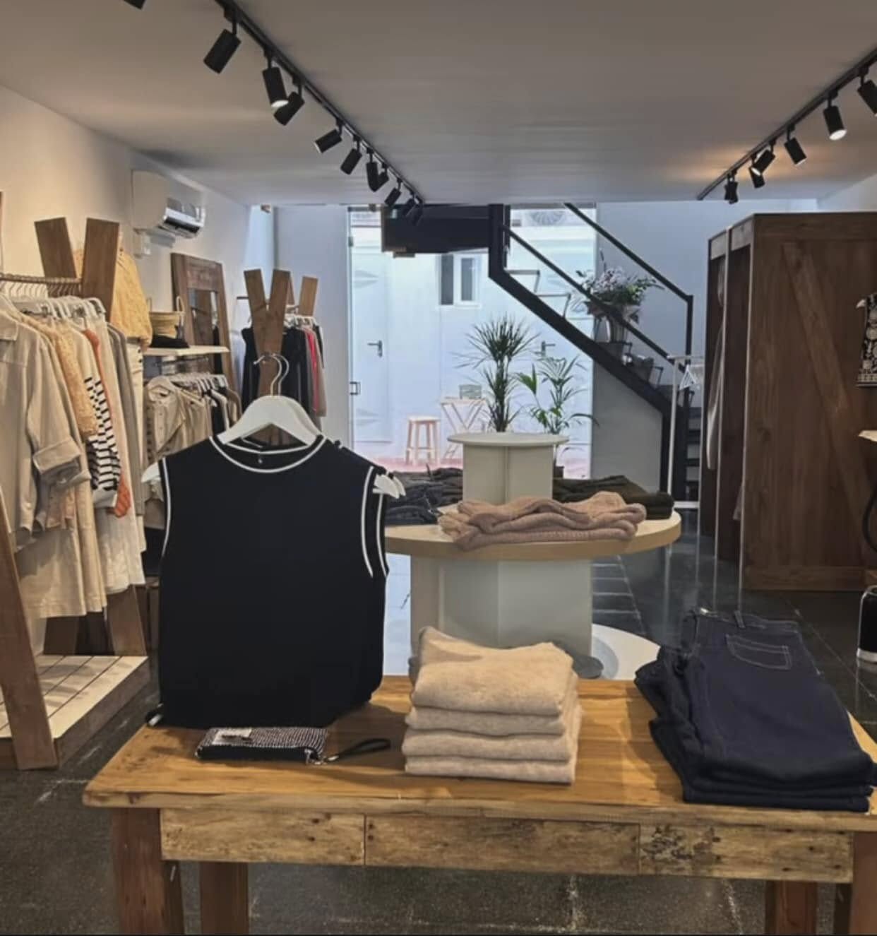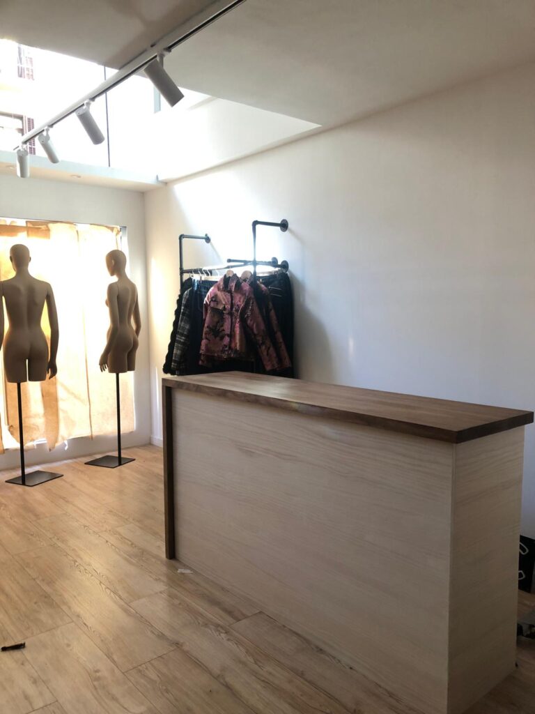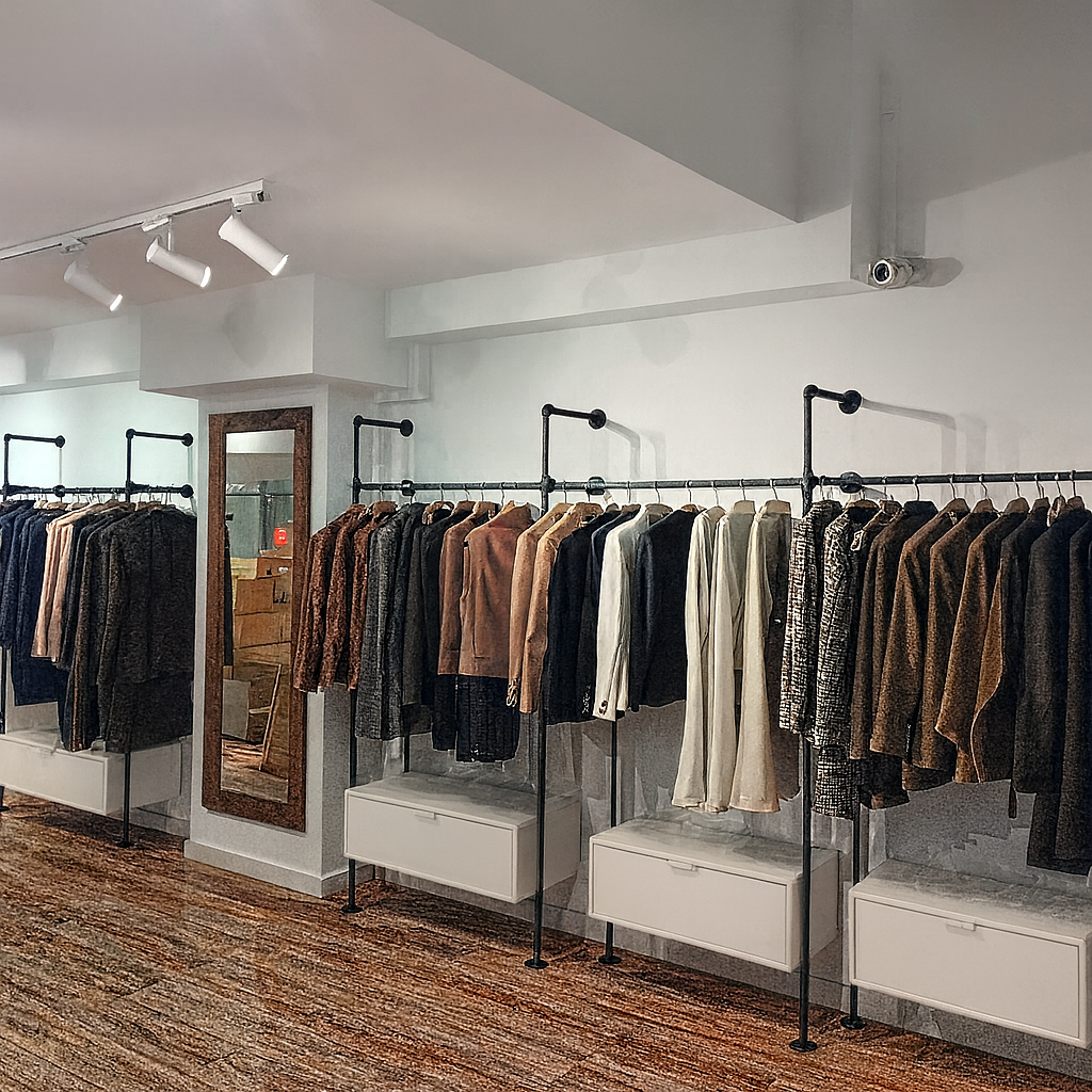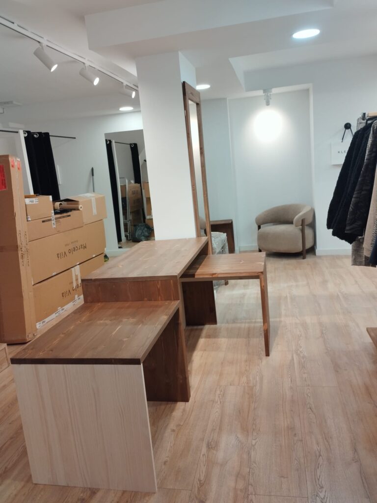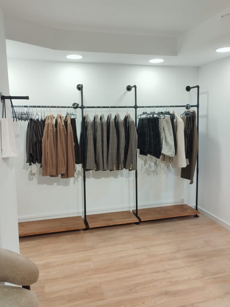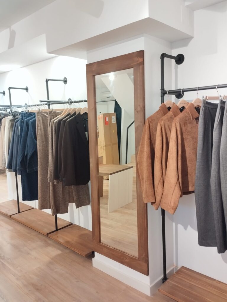 Creamos espacios comerciales que venden más y transmiten marca. En este proyecto de tienda de ropa diseñamos e instalamos mobiliario a medida en madera natural, con soluciones pensadas para destacar el producto y crear una experiencia de compra atractiva y coherente con la identidad visual de la marca.